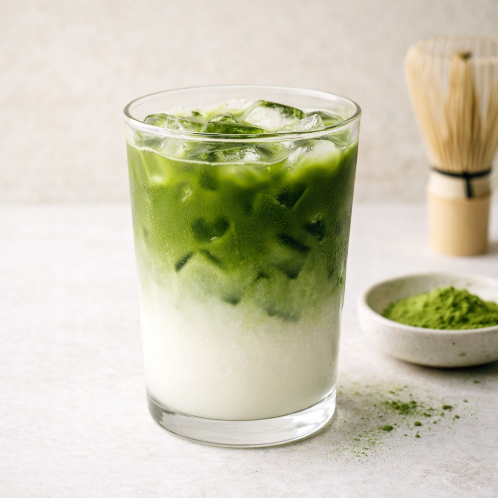 Saf matchanın ve sıcak sütün birleşimiyle ortaya çıkan sade ve yumuşak lezzetini deneyimleyin.
